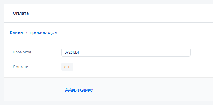 Когда это поле будет заполнено, то в разделе оплаты будет выведена ссылка на клиента с этим промокодом.